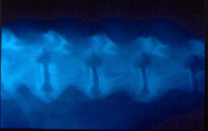 DISC DISEASE & PARALYSIS(Intervertebral disc disease - IVD - Degenerative disc disease - disk disease)This is the subject of a .pdf document (Disc Disease) Lumbar disc disease, thoraco-lumbar disc disease or, for that matter, any disc disease, is a very distressing condition. It is characterised by a great degree of pain (back pain) and by greater or lesser loss of mobility. Human companions are, quite understandably, horrified when it happens. It is usually sudden and generally leaves a dog paraplegic (paralysed) in the hind quarters. It may or may not cause problems with urination or defaecation. In its extreme form, the lesion is usually caused by a sudden and forceful rupture of the ‘pulp’ of an intervertebral disc, into the spinal canal. The spinal cord has nowhere to go, being enclosed in a bony channel, so it is subjected to a forceful concussion. Pressure on the spinal cord is probably not the cause of the signs, rather that the spinal cord has been severely damaged by the impact described above. Oedema of the spinal cord follows injury, resulting in further damage if not prevented. The treatment of choice for this problem is prompt acupuncture, which has been shown to have the best success rate of all the usual interventions, even surgery, whatever the ‘grade’ of damage. At the Alternative Veterinary Medicine Centre, we use acupuncture, supported by homeopathy and LASER therapy, which integrated programme enhances the benefits that would be provided by acupuncture alone. The homeopathy can both reduce or prevent oedema in the early stages and speed healing of the spinal cord damage in the medium term. In this way, treating with an integrated combination of therapies, more normal function gradually returns within the coming weeks. If high quality acupuncture and homeopathy cannot be obtained promptly, an injection of short-acting steroid may prove beneficial in minimising resultant oedema of the spinal cord, in the early stages. At the Alternative Veterinary Medicine Centre, we have seen only one case in which very beneficial help did not follow on the line of therapy described. If we see cases after surgery has been performed, however, if the surgery has failed, we do not have such good results. If a disc has ruptured in this way, it cannot cause further damage, since it cannot rupture for a second time. There may be other discs, however, which have been similarly weakened by whatever process weakened the first one. For this reason, we put in place a long-term homeopathic and dietary régime, designed to lessen that risk. To summarise, therapy has to answer four main challenges: